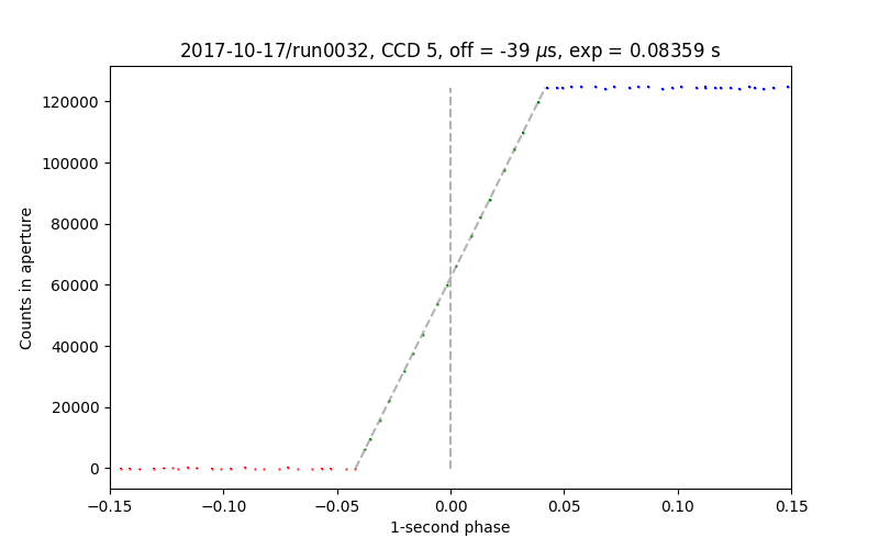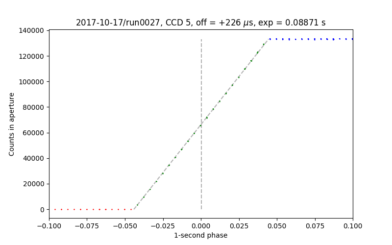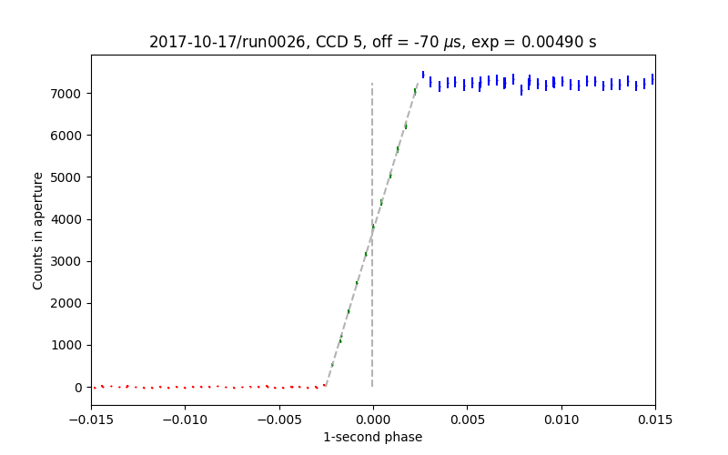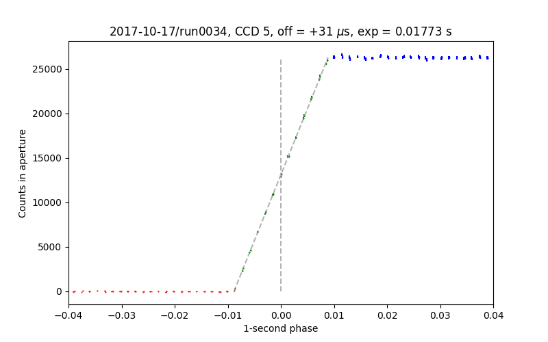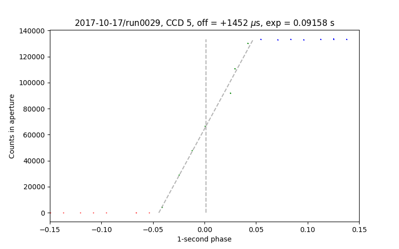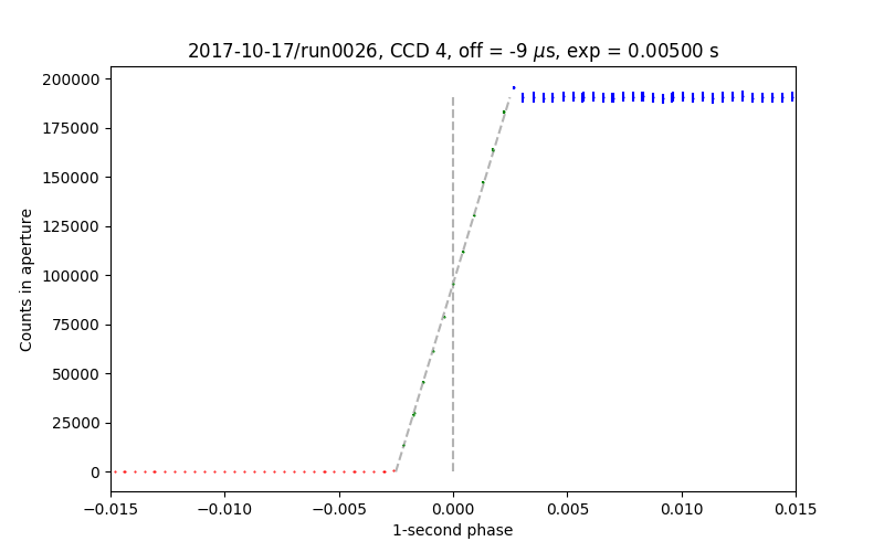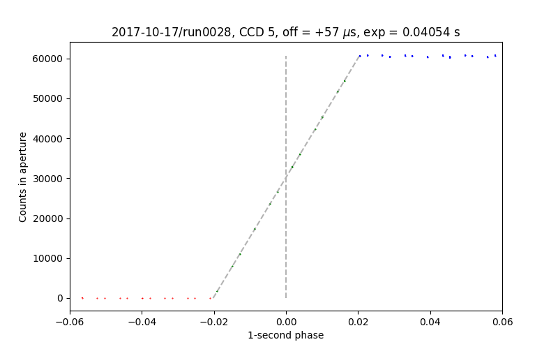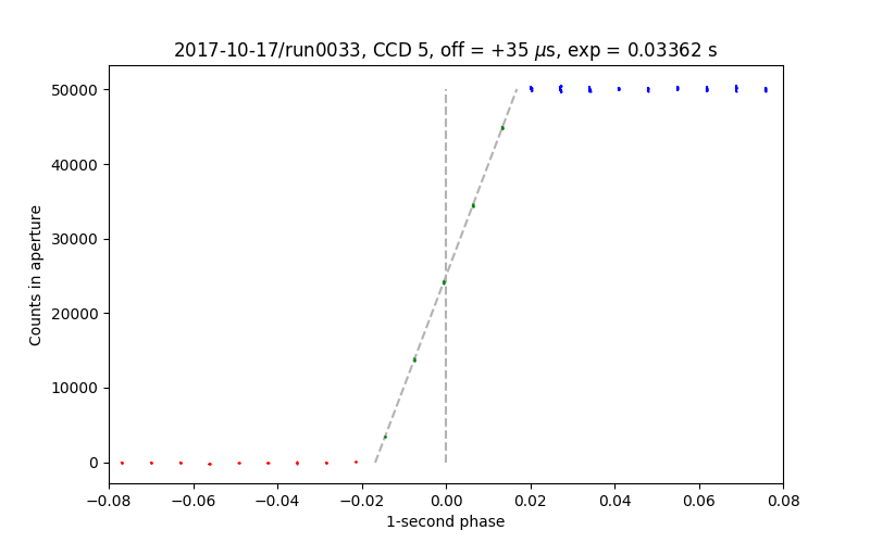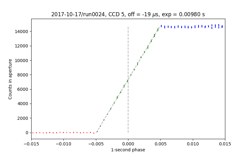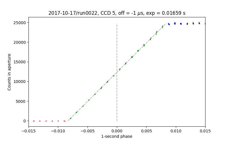 Fig. 12 Timing test data for CCD 5, run0024 of 2017-10-22 shows a -19 microsecond offset.¶