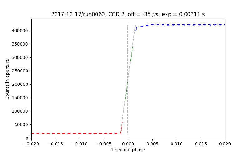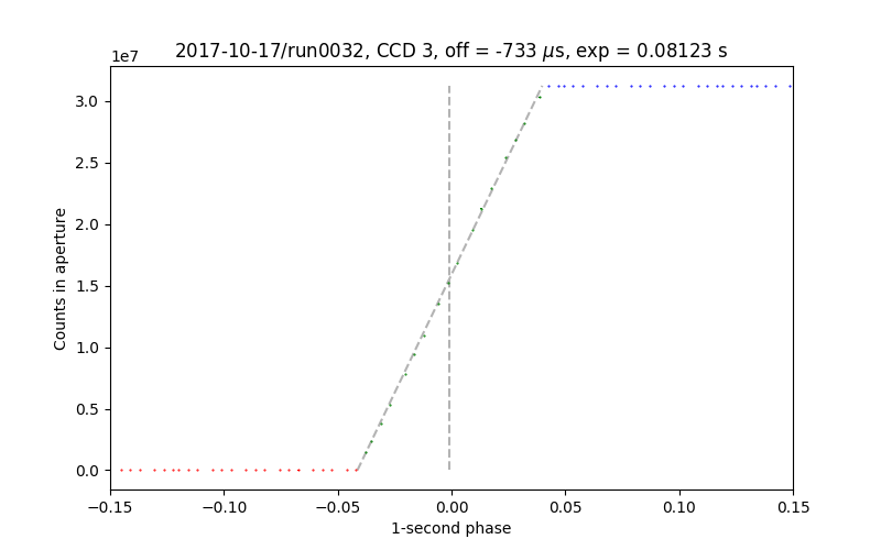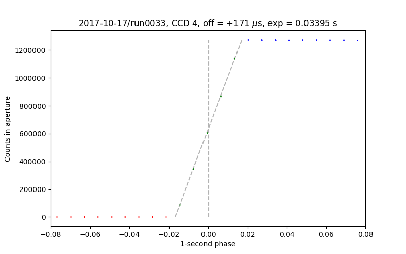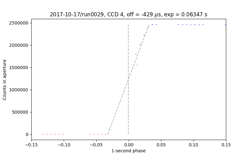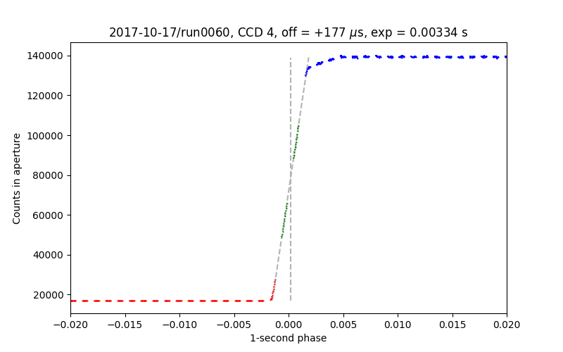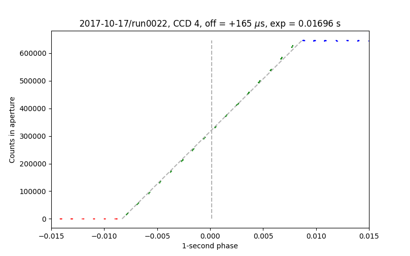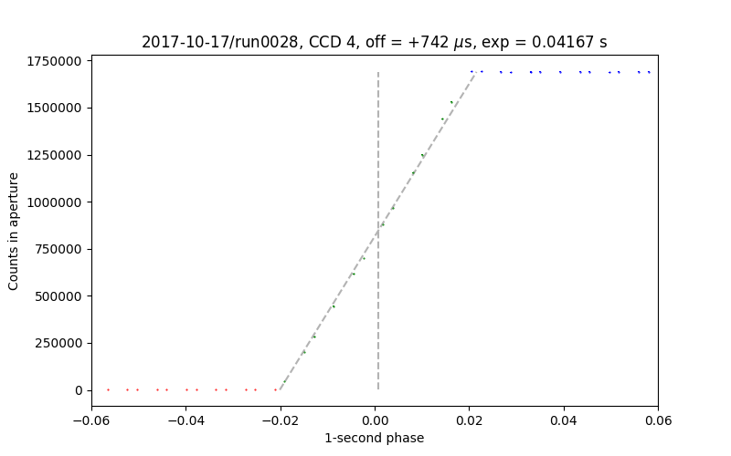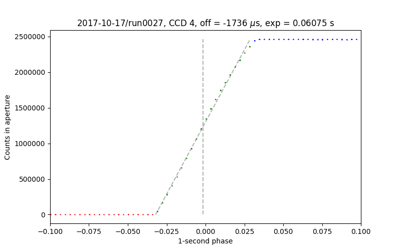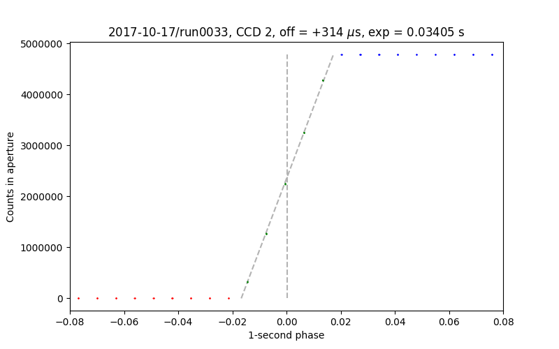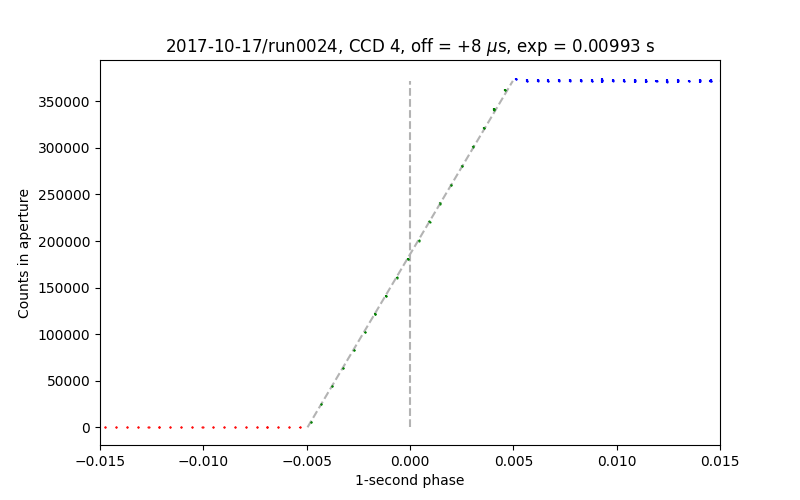 Fig. 12 Timing test data for CCD 5, run0024 of 2017-10-22 shows a -19 microsecond offset.¶